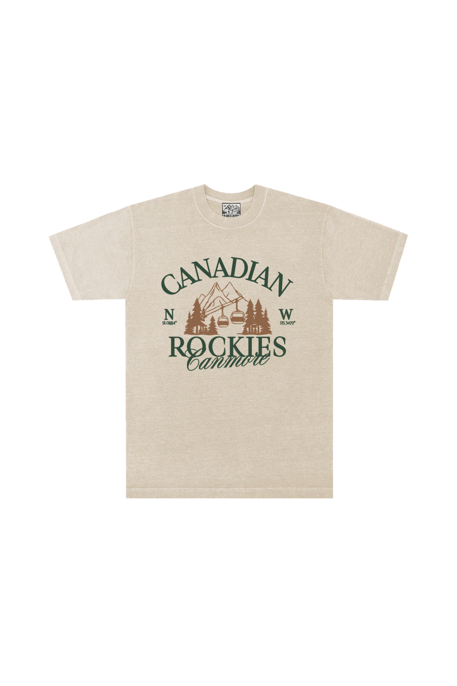 A classic unisex tee with a round neckline, short sleeves, and a Canadian Rockies emblem on the front. Made from 100% premium cotton. Designed in Canada.
