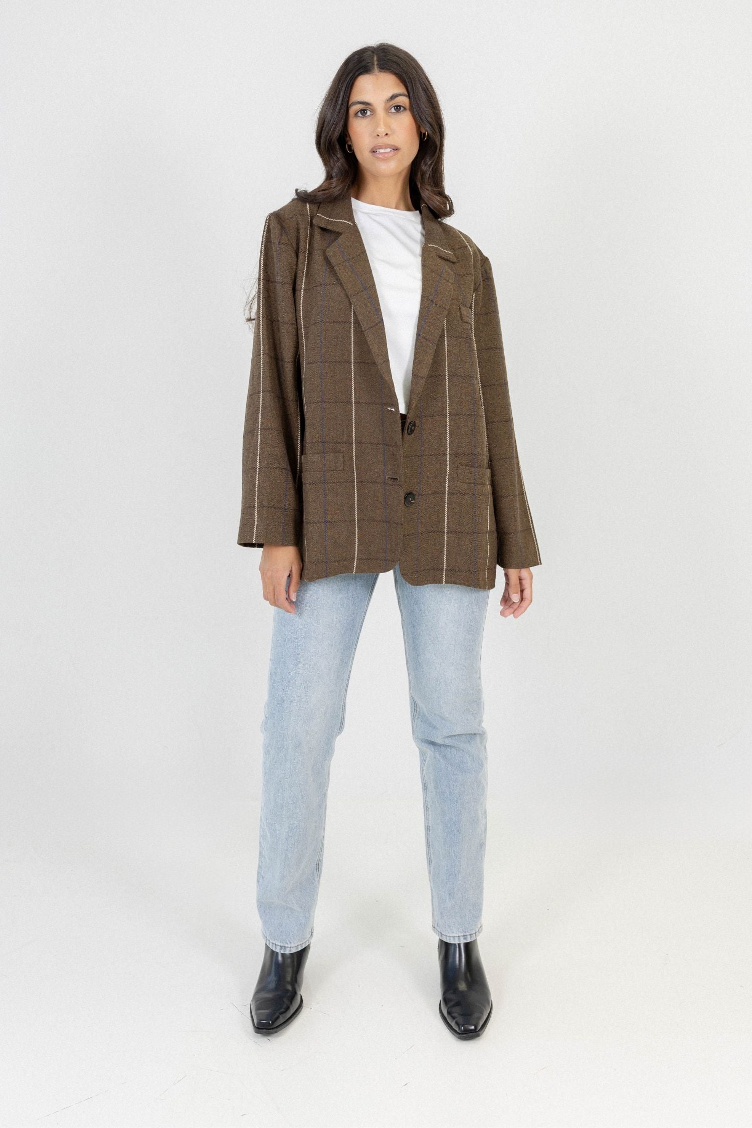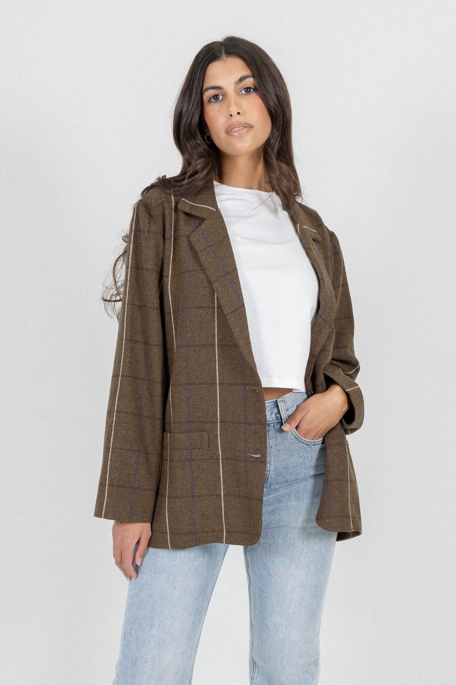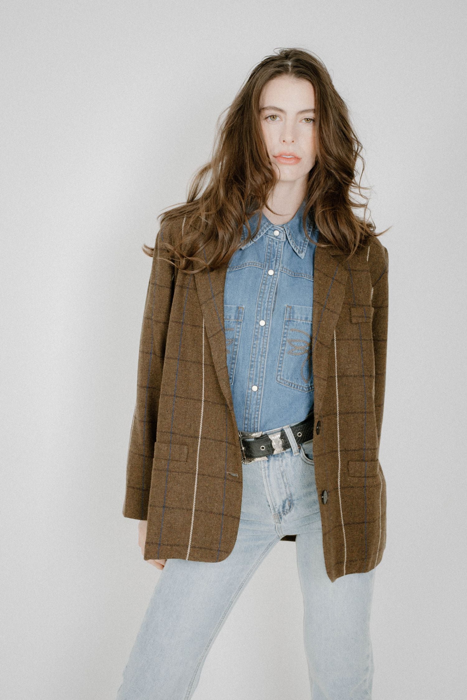 A 90’s-inspired blazer with a relaxed, slightly oversized fit. Timeless and versatile, it’s the perfect layer to wear indoors or styled over any look year-round.