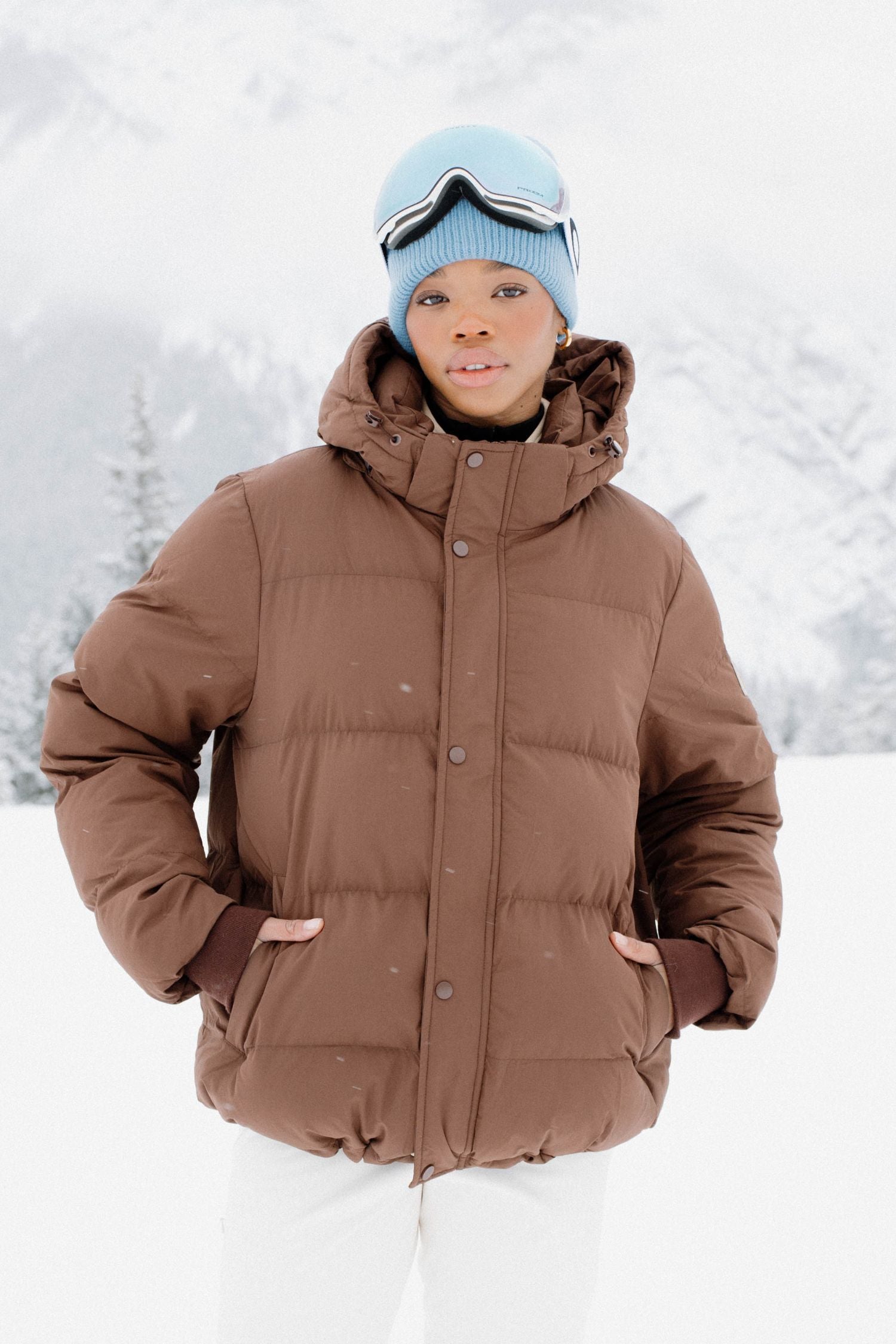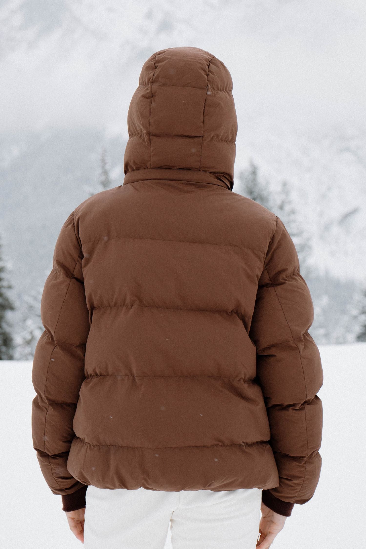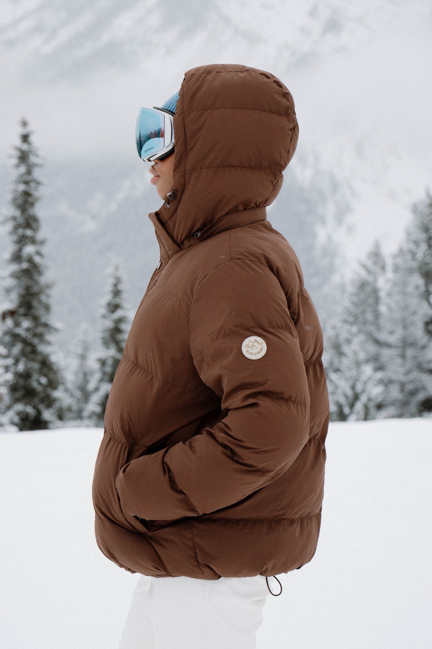 The Nordic Jacket is a warm, slightly oversized puffer with a modern alpine feel. Its matte finish and structured shape create a timeless winter layer made for cold days in the mountains.