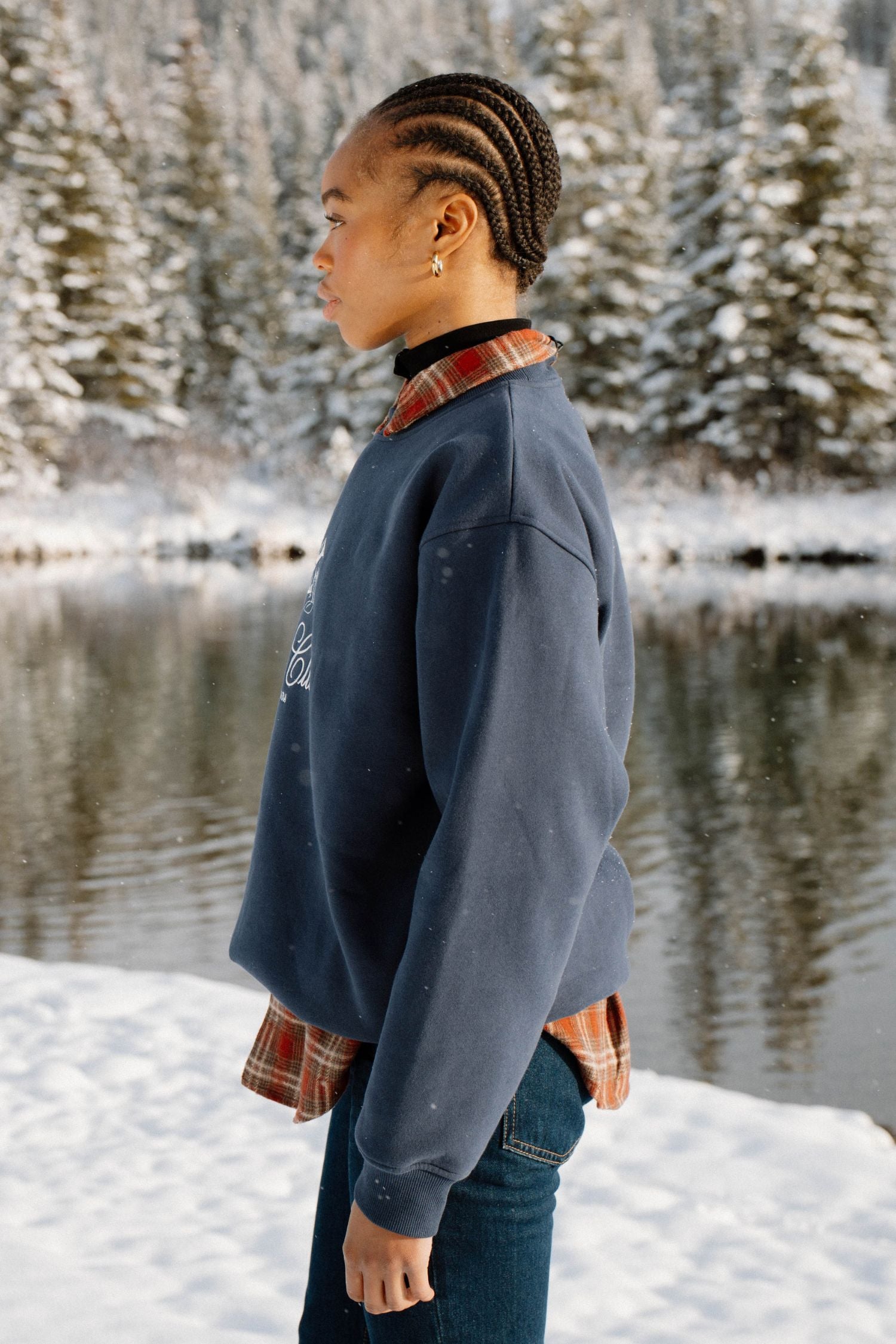 A cozy unisex sweatshirt with an oversized fit and a cloud soft feel. The Ski Club Sweatshirt features front embroidery inspired by classic alpine style, designed for relaxed winter days.