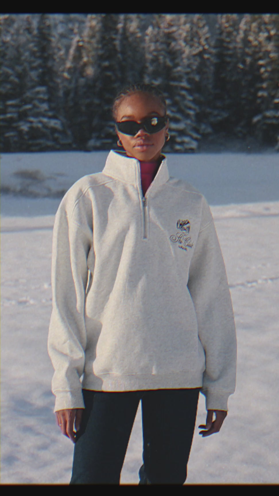 The Ski Club Zip is a unisex, oversized fit made from a super soft fleece that feels like a cloud. Designed with a clean metal zipper and front embroidery, it is an easy winter layer for everyday mountain life.